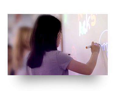 Como pizarrones, muros y escritorios en centros interactivos de trabajo, desde 60 a 100 pulgadas sin costo extra.